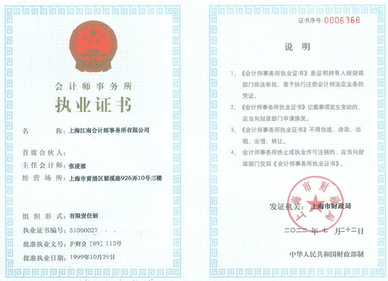 上海江南会计师事务所有限公司 地址: 上海市瞿溪路926弄综合楼3楼 电话: 021-63014442